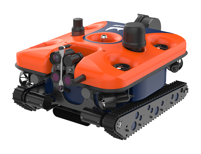 為滿足復雜特殊環境檢測作業需求而設計的水下機器人。可以實現爬壁清潔,自主路徑規劃等功能。主要應用在水電站、水庫、風電場、輸水隧洞等水工設施的檢測清潔。
